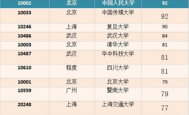 传媒产业属于知识产业,核心资源是人才。传媒的发展根本在于人才,人才的根本在教育!《2012年 学科评估结果》中的0503新闻传播学的全国48所高校排名中前十名如下: