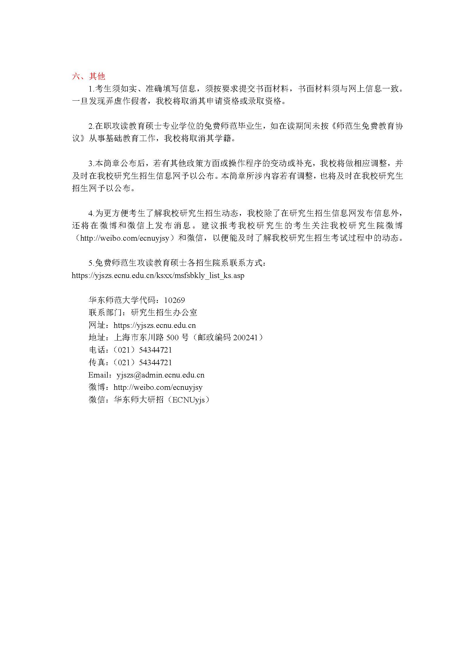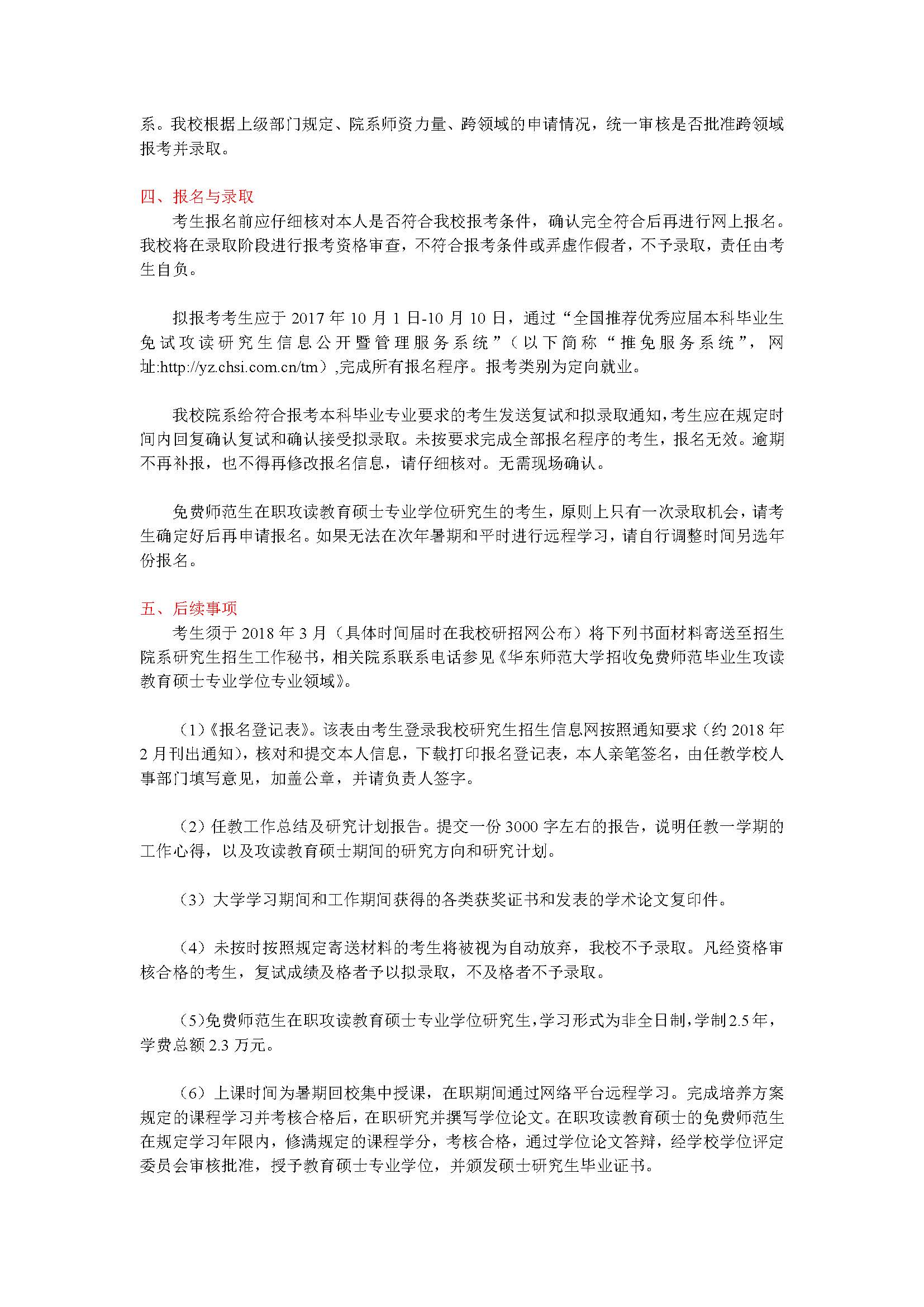 华东师范大学2018年免费师范毕业生在职攻读教育硕士招生简章