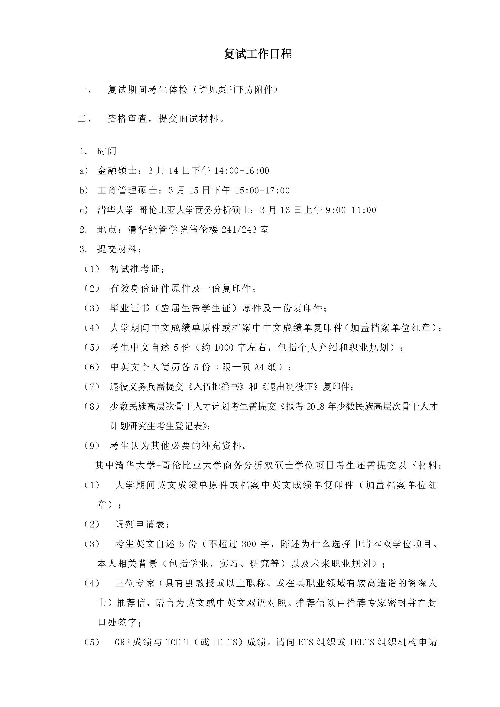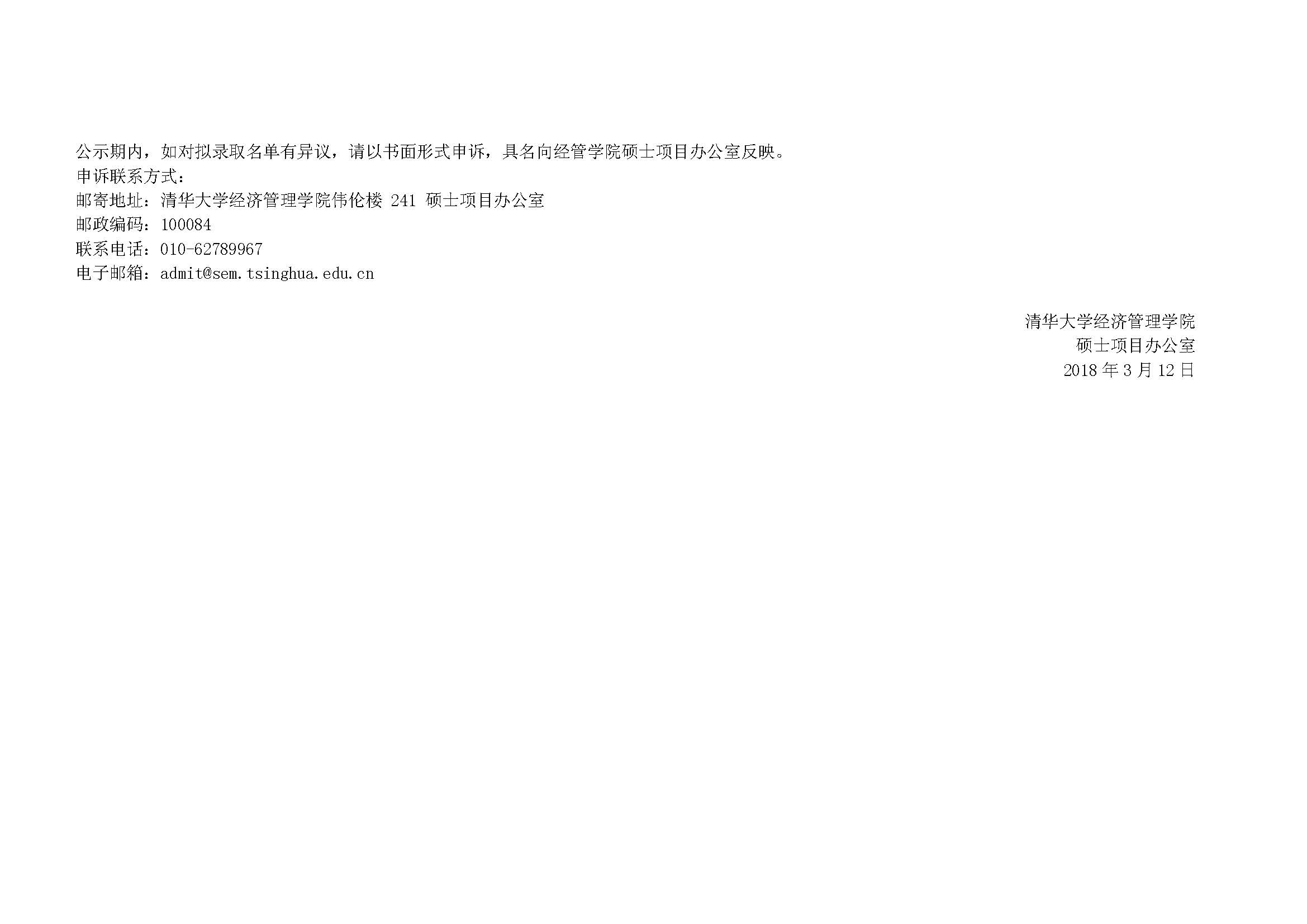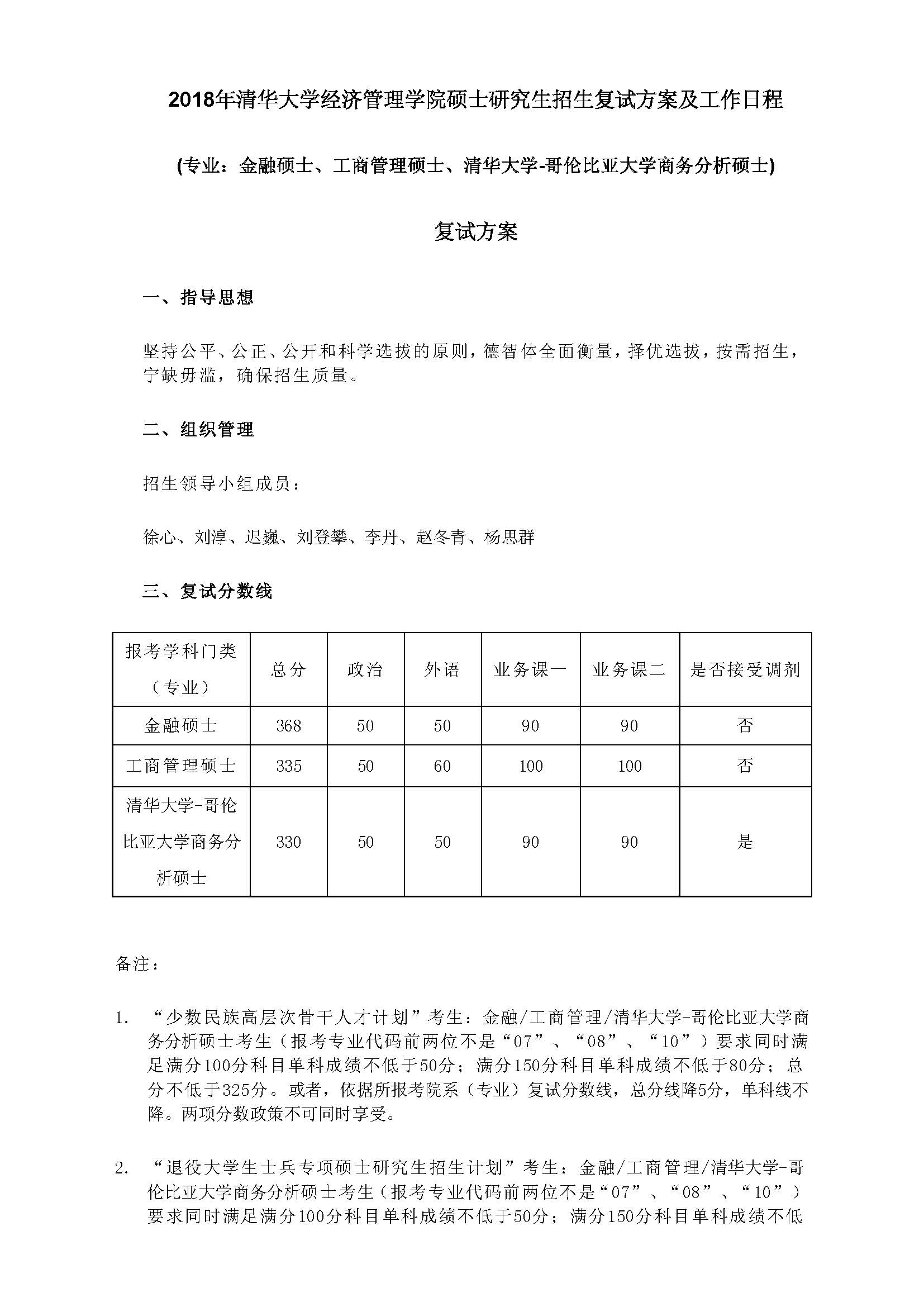 清华大学经济与管理学院2018年硕士研究生复试分数线、复试名单、安排