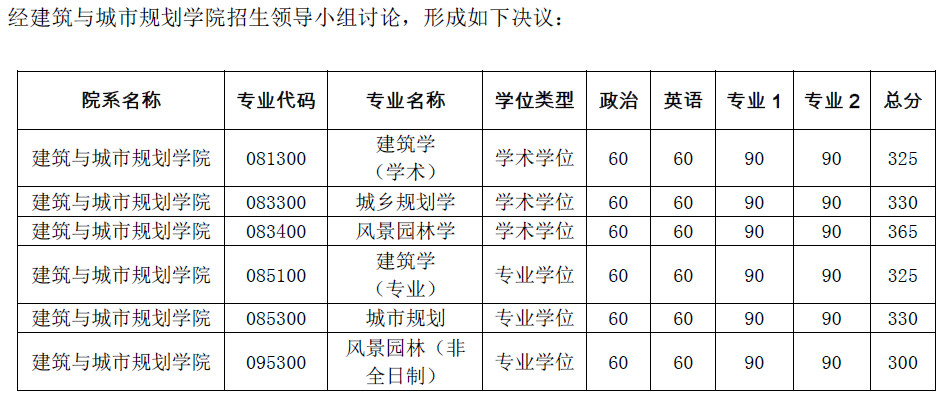 经建筑与城市规划学院招生领导小组讨论,形成如下决议: