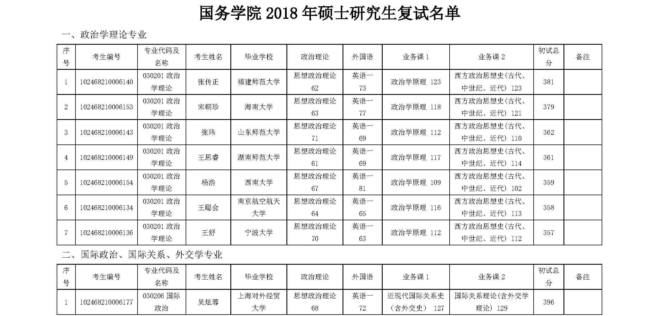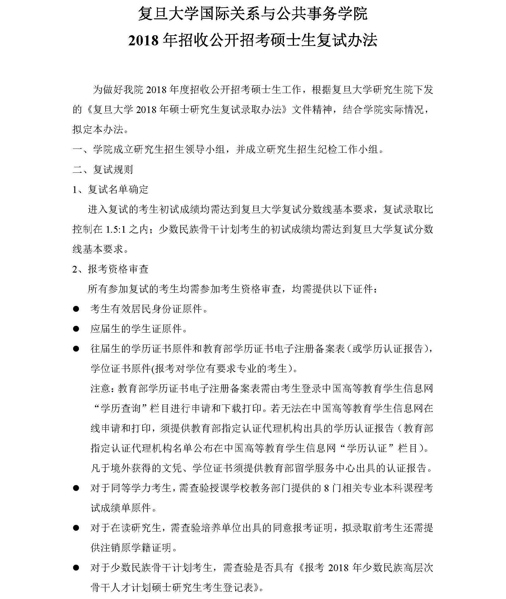 复旦大学国际关系与公共事务学院2018年硕士研究生复试办法及复试名单