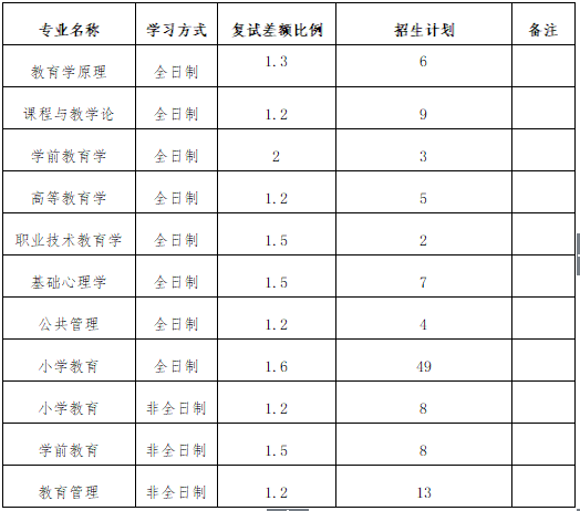一、院校简介 教育科学学院(教师教育学院)是体现我校教师教育特色的专业学院,其前身是1959年徐州师范学院设立的教育科学教研室。1998年,成立教育系。2003年,建成教育科学学院。2012年9月,为深化教师教育改革,打造教师教育品牌,探索教师职后培训新模式,学校整合相关教师教育资源新组建教师教育学院。2016年1月,教师教育学院与教育科学学院合并运行。在学院发展史上,著名教育家刘百川教授、心理学家张焕庭教授曾在此执教。 学院下设教育学系、心理学系、学前教育系、中学文科教研部、中学理科教研部和实验教学中心(三系两部一中心),以及教育科学研究所、心理科学研究所、学前教育研究所、高等教育研究所和基础教育研究中心等研究机构。拥有小学教育、学前教育、应用心理学三个本科专业,拥有教育学一级学科硕士学位授权点,心理学一级学科硕士学位授权点,以及教育管理、小学教育、学前教育、心理健康教育专业硕士学位授权点。教育学一级学科为江苏省优势重点学科,小学教育和学前教育专业为江苏省重点专业,小学教育专业为“江苏省卓越小学教师培养计划项目”承担专业。拥有教师教育省级实验教学示范中心、心理学实验教学中心,目前已形成以职前培养为主,硕士研究生教育、本科教育、继续教育协调发展的教育结构。 二、考试科目 学术学位 教育学原理 复试:F08教育哲学 学前教育学 复试:F09学前教育学 高等教育学 复试:F10高等教育学 职业技术教育学 复试:F11职业技术教育学 课程与教学论 复试:F18教学论 教育经济与管理 复试:F56教育经济与管理基础综合 考试科目:①101思想政治理论②201英语一③622教育学基础综合(教育学原理、中外教育史) 专业学位(教育硕士) 小学教育 (全日制) 小学教育 (非全日制) ①101思想政治理论 ②204英语二 ③333教育综合 ④826儿童发展心理学 复试:F18教学论 学前教育(非全日制) ①101思想政治理论 ②204英语二 ③333教育综合 ④830学前教育史 复试:F09学前教育学 教育管理(非全日制) ①101思想政治理论 ②204英语二 ③333教育综合 ④829教育管理学 复试:F23管理心理学 心理健康教育 ①101思想政治理论 ②204英语二 ③333教育综合 ④877发展心理学 复试:F15心理咨询与治疗 四、参考书目 622教育学基础综合 《教育学》,王道俊、郭文安主编,人民教育出版社,2009年版; 《当代教育学》袁振国主编,教育科学出版社,2006年版或2010年版; 《中国教育史》,孙培青主编,华东师范大学出版社,2010年版; 《外国教育史》,张斌贤主编,教育科学出版社,2008年版; 826儿童发展心理学 《儿童发展心理学》,刘金花等,华东师大出版社,2013年版; 《发展心理学》,林崇德,人民教育出版社,2009年版。 830学前教育史 《学前教育史》,何晓夏,高等教育出版社,2014年版。 829教育管理学 《教育管理学导论》,张新平著,上海教育出版社,2006; 《新编教育管理学》(第二版),吴志宏等,华东师范大学出版社,2008年版。 877发展心理学 《发展心理学》,林崇德主编,人民教育出版社,2009年第2版; 《儿童发展心理学》,刘金花主编,华东师范大学出版社,2013年第3版 五、复试参考书 F08教育哲学 《教育哲学通论》,黄济,山西教育出版社,2008年版 F09学前教育学 《学前教育学》,虞永平,王春燕编,高等教育出版社,2012年版。 F10高等教育学 《高等教育学》,潘懋元 王伟廉主编,福建教育出版社,2013年版; 《高等教育学新论》,胡建华 周川等主编,江苏教育出版社,2006年版。 F11职业技术教育学 李向东,卢双盈,职业教育学新编(第三版),高等教育出版社,2015年。 F18教学论 《现代教学论学程》黄甫全,王本陆,教育科学出版社,2003年版。 F56教育经济与管理基础综合 教育经济学 ,参考科目:靳希斌《教育经济学(第四版)》 ,人民教育出版社,2009 。 F23管理心理学 《管理心理学》(第四版)苏东水,复旦大学出版社,2006年版。 F15心理咨询与治疗 《心理咨询与心理治疗》(重排本),钱铭怡主编,北京大学出版社,2016年版 六、复试分数线 达到国家A类地区初试成绩基本要求 2018年 教育学考研咨询新祥旭朱老师13611267718.png)