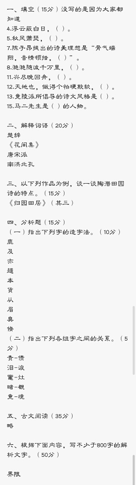 2019年首都师范大学710古代文学考研专业课真题回忆