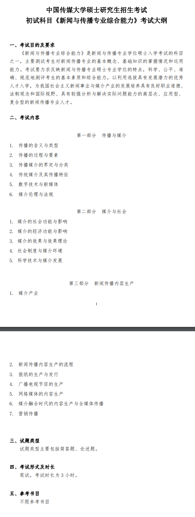 最新!2020年中传新闻专硕考研专业课334新闻与传播专业综合能力考试大纲