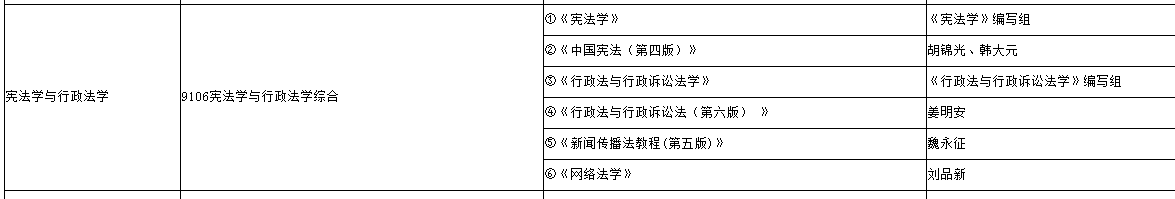 2020年中传宪法学与行政法学初试参考书目、复试参考书目、加试参考书目等