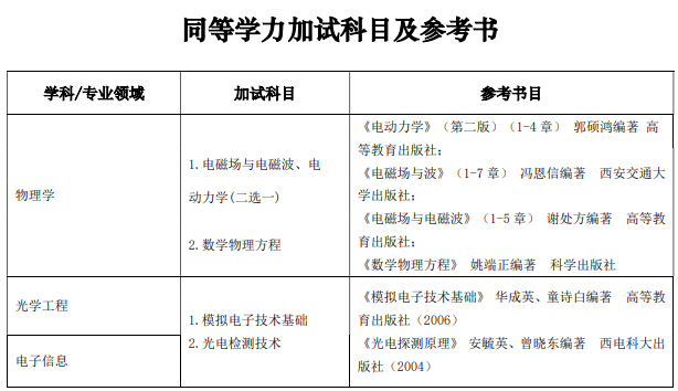 西安电子科技大学考研辅导班:2020西安电子科技大学物理与光电工程学院考研参考书