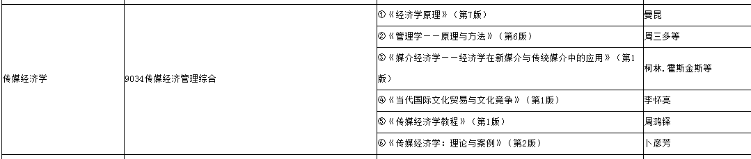 中传考研辅导班:2020年中传传媒经济学考研复试参考书目