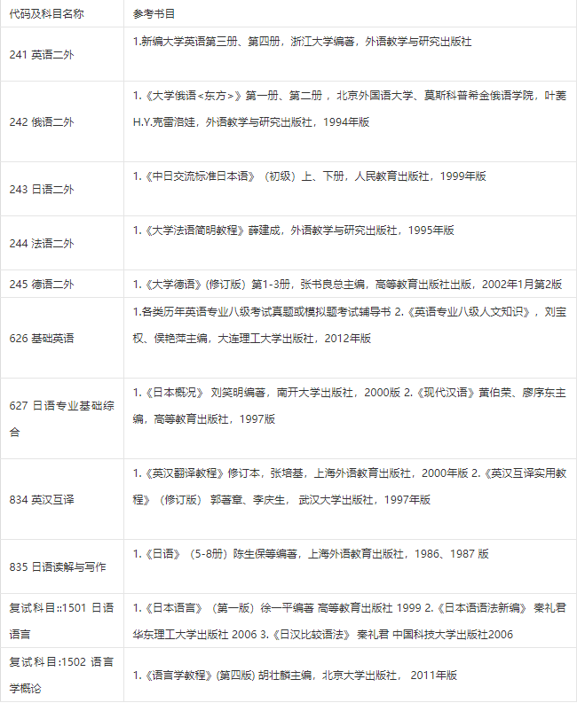 南农考研辅导班:2020年南京农业大学0502外国语言文学考研参考书目
