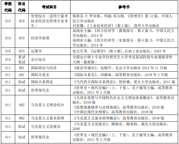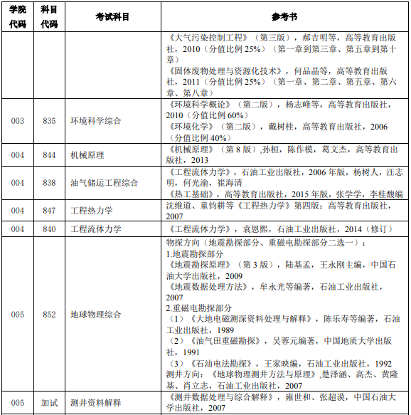 中国石油大学(北京)考研辅导班:2020年中国石油大学(北京)硕士研究生招生参考书目