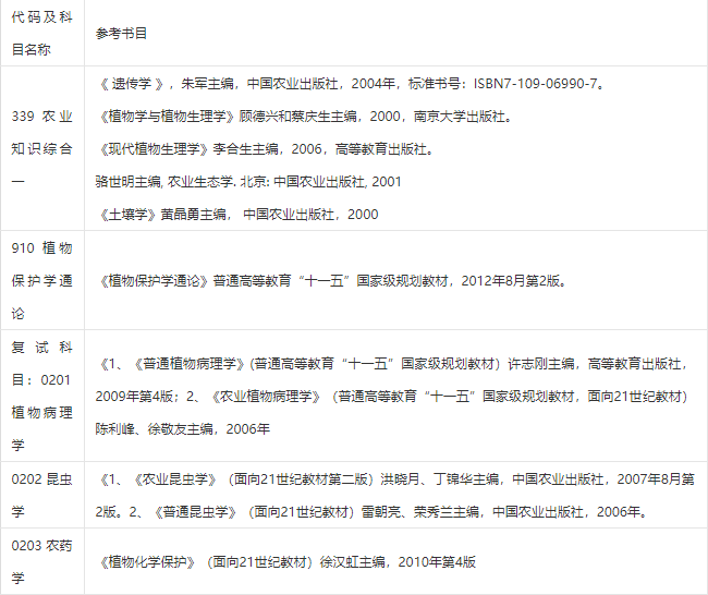 南农考研辅导班:2020年南京农业大学095104植物保护考研参考书目