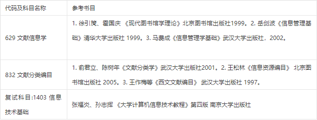 南农考研辅导班:2020年南京农业大学120502 情报学考研参考书目