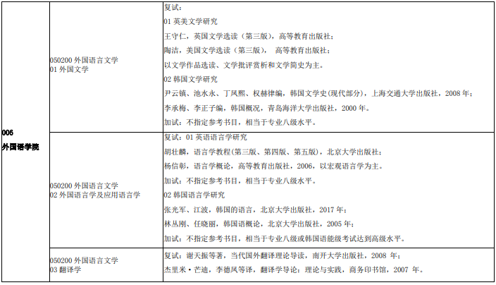 烟台大学考研辅导班:2020年烟台大学外国语学院考研复试及加试参考书