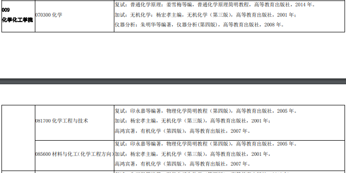 烟台大学考研辅导班:2020年烟台大学化学化工学院考研复试及加试参考书