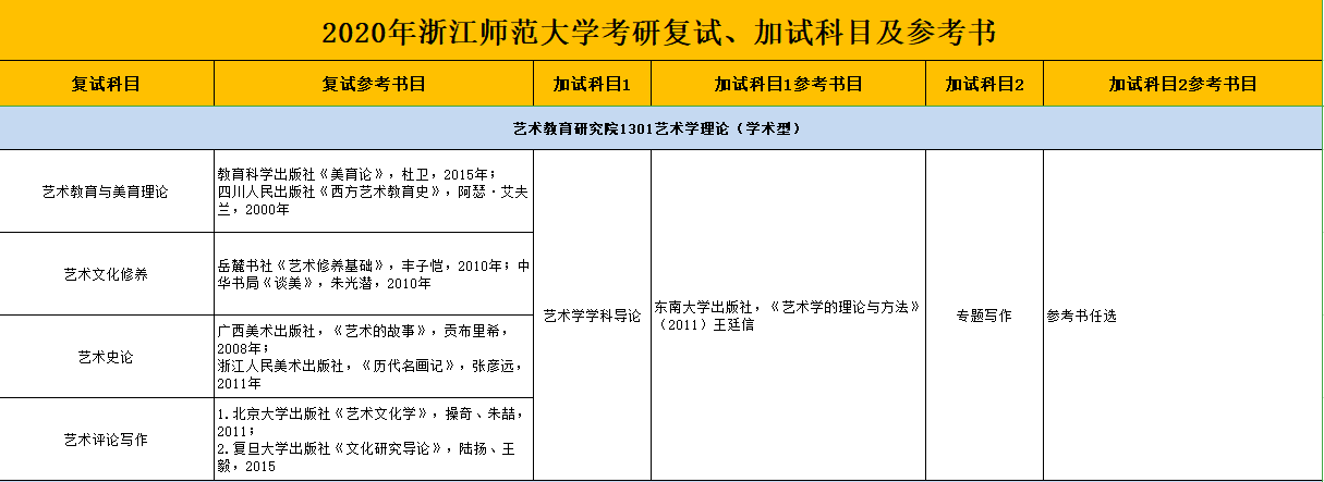 浙师大考研辅导班:2020年浙江师范大学复试参考书目-1301艺术学理论(学术型)