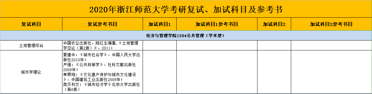 浙师大考研辅导班;2020年浙江师范大学复试参考书目-经济与管理学院1204公共管理(学术型)