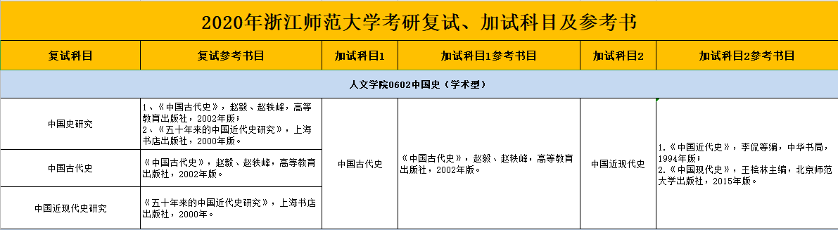 浙师大考研辅导班:2020年浙江师范大学复试参考书目-人文学院0602中国史(学术型)