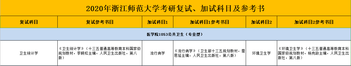 浙师大考研辅导班:2020年浙江师范大学复试参考书目-医学院1053公共卫生(专业型)
