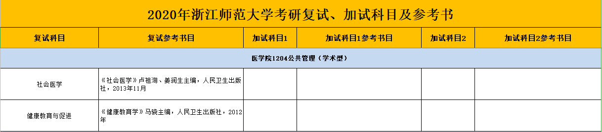 浙师大考研辅导班:2020年浙江师范大学复试参考书目-医学院1204公共管理(学术型)