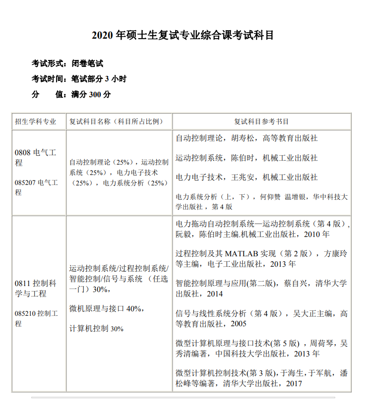 中南大学考研辅导班:中南大学自动化学院2020年硕士生复试专业综合课考试科目
