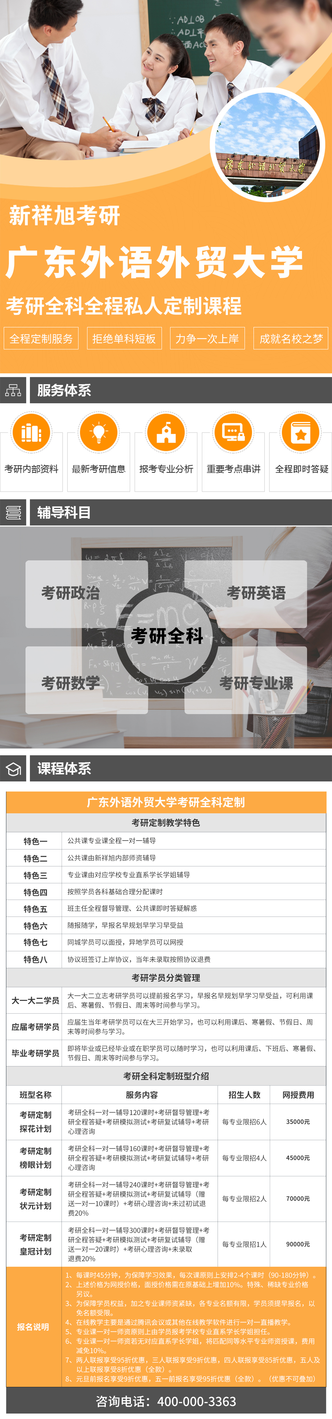 课程描述:新祥旭考研专注广东外语外贸大学考研全科定制辅导,以效果为导向,以上岸为目标,为广大考研学生提供个性化、定制化、多对一的考研全科全程辅导,考研公共课和考研专业课皆为一对一辅导,全国各地考研学生可以面授也可以网授,力争让考研学生顺利考取广东外语外贸大学攻读硕士研究生。
