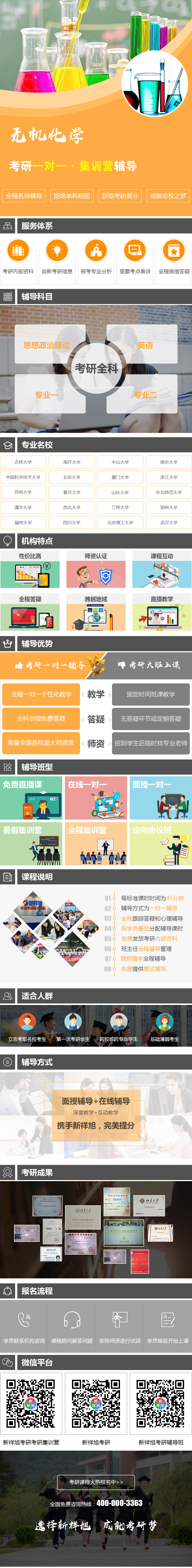 课程描述:新祥旭考研机构开设有无机化学考研辅导班(无机化学考研辅导班|无机化学考研专业课辅导班|无机化学考研一对一辅导班|无机化学考研集训营),提供无机化学考研公共课和专业课全科辅导服务,通过系统的一对一和集训营辅导课程,帮助学员一次性考取全国名校无机化学硕士研究生。