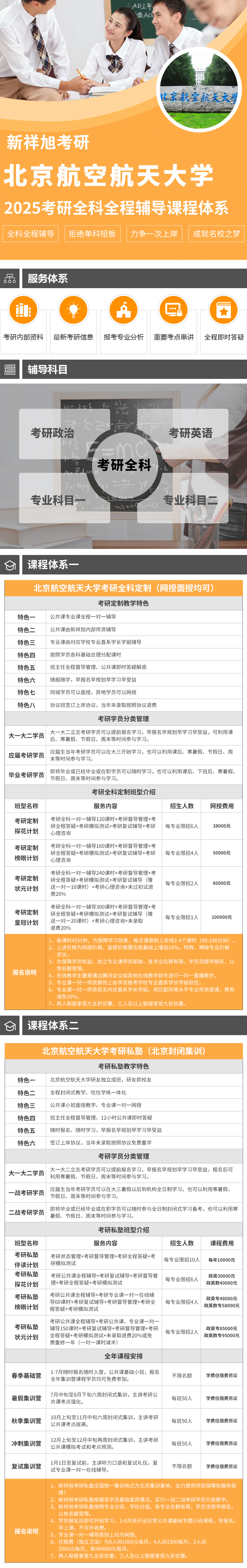 课程描述:新祥旭考研机构开设有北京航空航天大学考研辅导班(北京航空航天大学考研辅导班|北京航空航天大学考研专业课辅导班|北京航空航天大学考研一对一辅导班|北京航空航天大学考研集训营),提供北京航空航天大学考研公共课和专业课全科辅导服务,通过系统的一对一和集训营辅导课程,帮助学员一次性考取北京航空航天大学的硕士研究生。