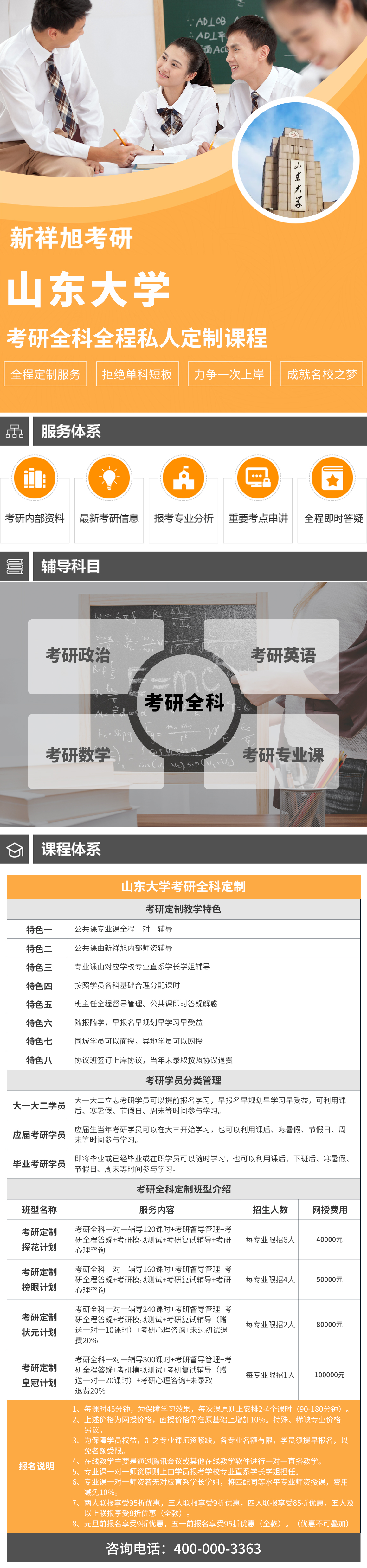 课程描述:本课程适用于考研报考山东大学世界史的所有考生,通过系统的一对一或者集训营课程体系的面授或在线辅导,力争考取山东大学世界史研究生。(面授在线均可)